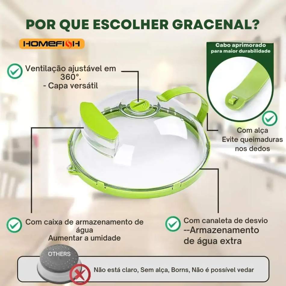 Tampa Transparente de Alimentos para micro-ondas com Reservatório de Agua
